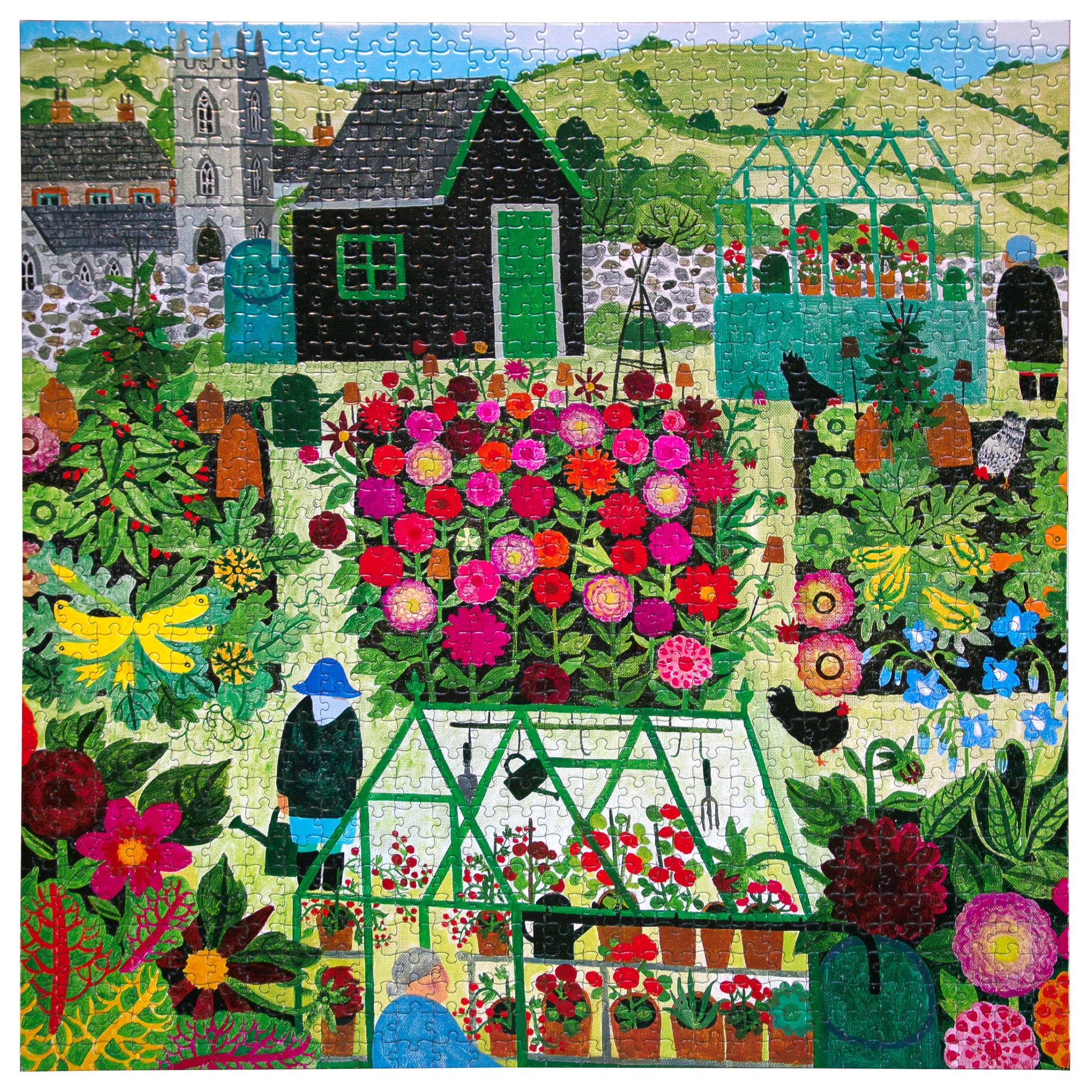 An English vegetable garden and greenhouse bursting with flowers and vegetables. Spot all the wonderful summer bounty and the careful caretaker with her gigantic watering can. Lovingly painted by English artist, Vanessa Bowman.